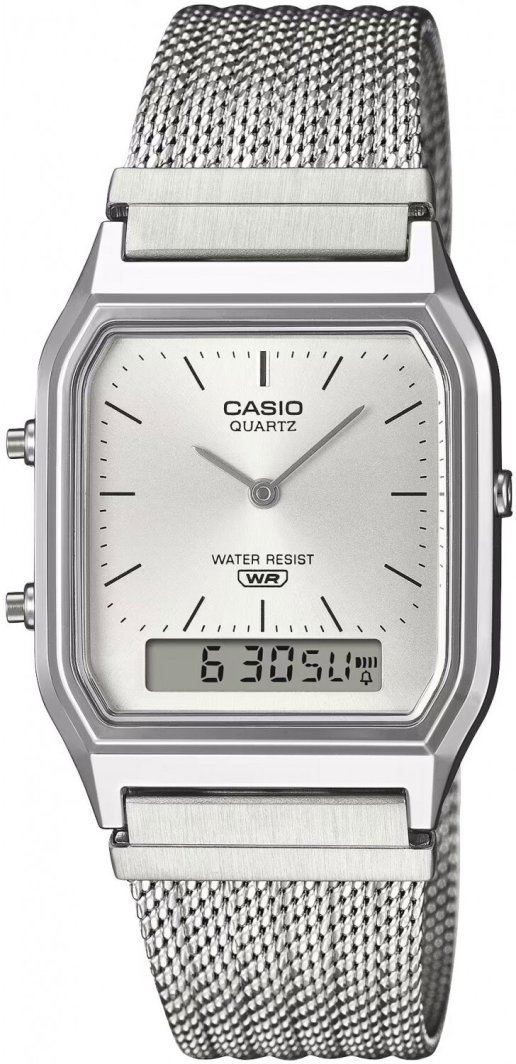 Model AQ-230EM-7AEF wyposażony jest w srebrny pasek typu mesh, który dodaje mu szyku i nowoczesności. Taki rodzaj paska nie tylko prezentuje się doskonale, ale także zapewnia komfort noszenia przez cały dzień, co jest niezwykle istotne w codziennym użytkowaniu.