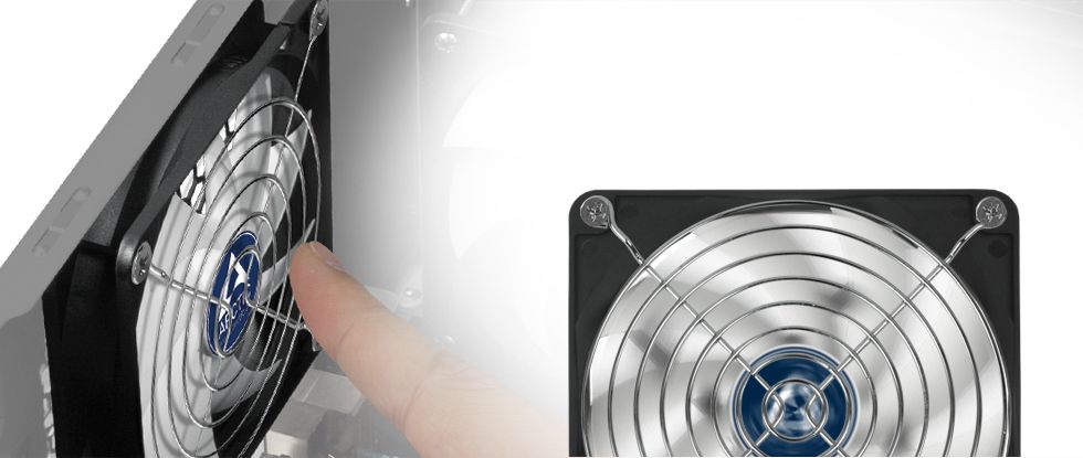 Kratki wentylatorów zapewniają ochronę przed szybko obracającymi się łopatkami wentylatora i zapobiegają uszkodzeniu kabli. Grille wentylatorów prawie nie wpływają na przepływ powietrza - mają mniej niż 1% wpływu na wydajność.