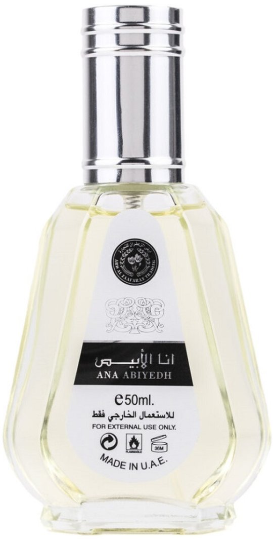 Ard al Zaafaran Ana Abiyedh I Am White to woda perfumowana w sprayu o pojemności 50 ml, która otula użytkownika niezwykłym zapachem, stając się jego znakiem rozpoznawczym. Już od pierwszego powąchania można się w niej zakochać, a jej aromatyczne nuty zachwycają przez długi czas.