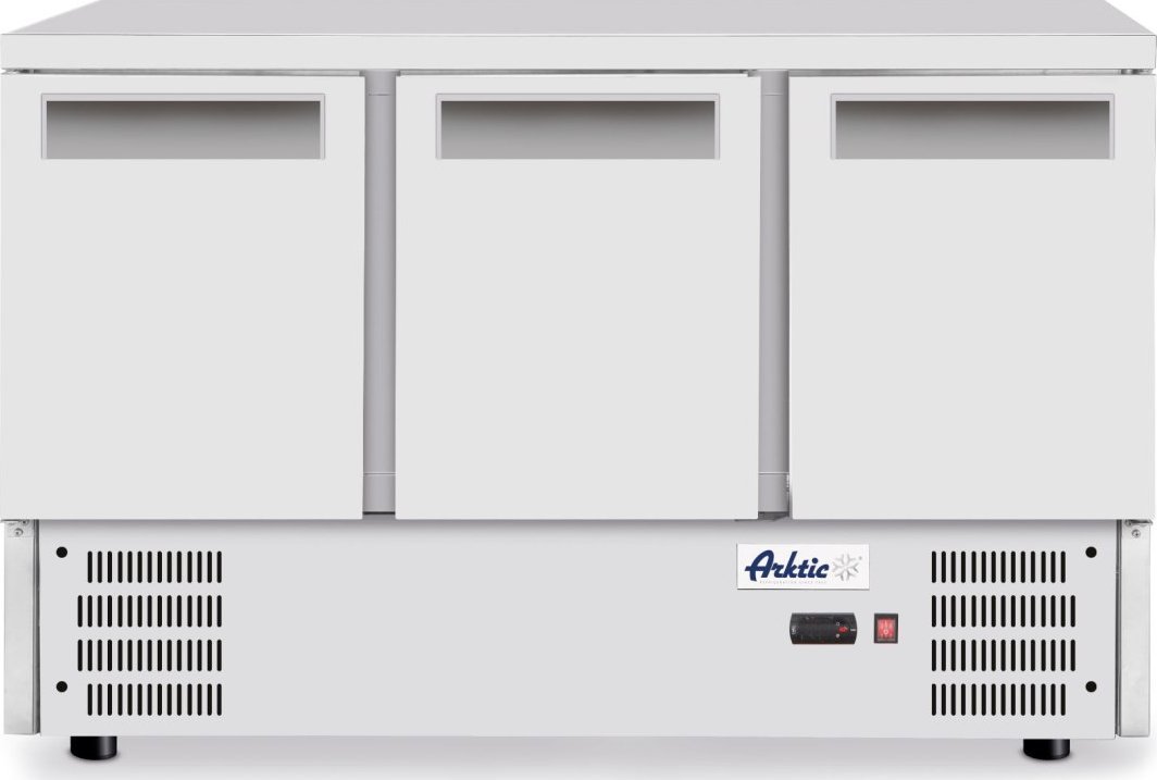 ARKTIC Stół chłodniczy 3-drzwiowy z blatem roboczym i agregatem dolnym nierdzewny 368 l - Hendi 236147