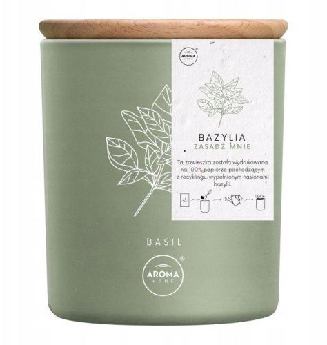 W zestawie ze świecą znajduje się unikalna zawieszka z nasionami bazylii, wykonana z eco* papieru. Po wypaleniu świecy, możesz zasadzić zawieszkę i cieszyć się świeżymi ziołami w swoim domu. Instrukcja zasadzenia jest dostępna za pomocą kodu QR umieszczonego na zawieszce, co sprawia, że proces jest prosty i przyjemny.