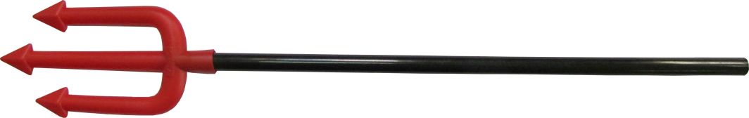 Mały trójząb o czarnej rękojeści i widełkach w kolorze czerwonym. Gadżet wykonany z tworzywa sztucznego. Bardzo lekki i poręczny. Zabawny element przebrania na bal lub imprezę halloweenową. Trójząb ma długość 52 cm.