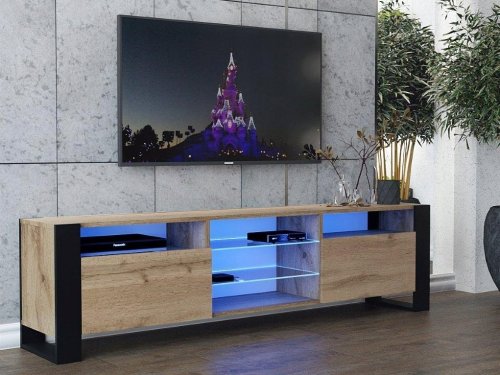 Szafka RTV LOFT 200 z oświetleniem LED to doskonałe połączenie nowoczesnego stylu i funkcjonalności, które idealnie wkomponuje się w każde wnętrze. Jej elegancki wygląd oraz praktyczne rozwiązania sprawią, że stanie się ona centralnym punktem Twojego salonu.