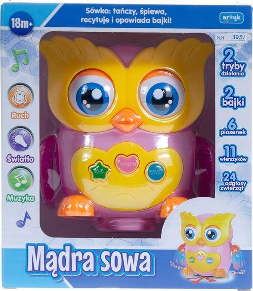 Edukacyjna mądra sowa, mówi, śpiewa i opowiada bajki, kolor różowy lub niebieski, baterie nie załączone