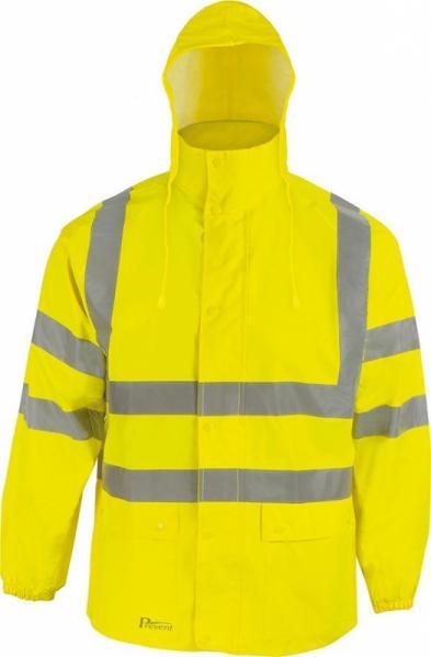 Kurtka »RJG«/»RJO« i spodnie »RHG«/»RHO« przeciwdeszczowe Właściwości: • wodoodporne, wiatroszczelne Wykonanie: • zgrzewane szwy • kaptur z kołnierzem i sznurkiem do ściągania • dwie kieszenie boczne z patką zapinaną na zatrzask • zamek błyskawiczny z przodu z zapięciem na zatrzaski • materiał odblaskowy 2 x 5 cm wokół tułowia i rękawów • pasy odblaskowe na ramionach Materiał: 100 % poliester, powłoka PU Dopuszczenie/norma: EN 20471 klasa 3, EN 343 EN ISO 20471 Odzież o intensywnej widzialności Od jesieni 2013 r. nowa norma »EN ISO 20471 Odzież o intensywnej widzialności« zastąpiła dotychczasową normę EN 471:2003+A1:2007. Odzież ochronna ostrzegawcza certyfikowana zgodnie z normą EN 471 z ważnym badaniem typu może być sprzedawana do upływu okresu ważności określonego w tej normie. Od 2010 r. okres ważności certyfikatów jest ograniczony do 5 lat. W związku z tym niniejszy system przejściowy zakończy się najpóźniej jesienią 2018 r. Ważne dla konsumenta końcowego: istniejące przepisy nie mają wpływu na okres użytkowania zakupionej już odzieży. Okres użytkowania jest nieograniczony. Najważniejsze zmiany Nowa norma EN ISO 20471 nie pociąga za sobą żadnych istotnych zmian. Nowością jest jednak podejście, zgodnie z którym odzież o intensywnej widzialności jest traktowana i oceniana w oparciu o ocenę „ryzyka" . Określono trzy poziomy ryzyka: wysoki, średni i niski. Klasyfikacja odnosi się do ryzyka niezauważenia w określonych sytuacjach. Podobnie jak w przypadku normy EN 471, w normie EN ISO 20471 klasa 3 jest najwyższa, a klasa 1 najniższa, w zależności od ilości materiału ostrzegawczego (materiał tła) i odblaskowego (materiał odblaskowy). Jest to z pewnością dobry sposób, aby pomóc konsumentowi ocenić, która odzież ostrzegawcza jest odpowiednia dla danego zastosowania związanego z określonym ryzykiem. Lepsza widzialność z każdej strony (0-360°) Aby zapewnić lepszą widoczność dookoła, odzież ostrzegawcza klasy 3 musi obejmować tułów i ramiona i/lub nogi pasami fluorescencyjnymi i odblaskowymi.