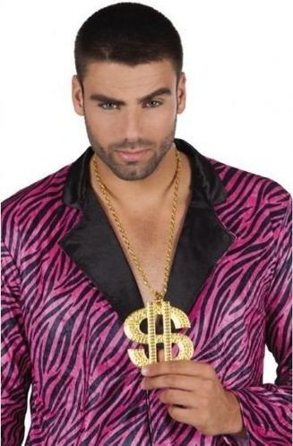 Naszyjnik dolar w rozmiarze XL. Do strojów disco i pop star. Kreacji w stylu Hollywood, dla raperów i gwiazd muzyki. Wzbogaci niejeden kostium karnawałowy.