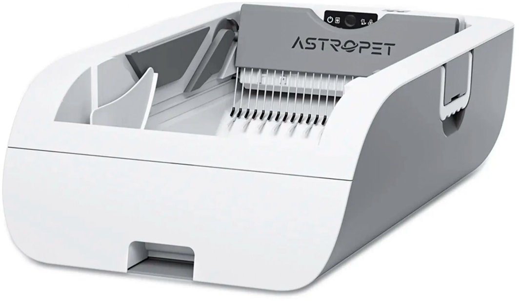 Astropet self-cleaning cat litter box button control.Helios