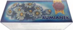 ASZ RUMIANEK 20X1,5G Rumianek jest herbatką ziołową polecaną szczególnie osobom, które zmagają się z różnego rodzaju dolegliwościami ze strony układu pokarmowego. Rekomendowana jest zwłaszcza w przypadku skurczy i stanów zapalnych żołądka i jelit, w zaburzeniach trawienia, przy braku łaknienia oraz w przypadku wzdęć brzucha i kolek. Napar z rumianku w postaci inhalacji można też stosować przy stanach zapalnych jamy ustnej i dróg oddechowych. Składniki:rumianek 100% Sposób uzycia:Do filiżanki lub podgrzanego wcześniej czajnika włożyć torebkę i zalać świeżo zagotowaną wodą. Parzyć około 5 minut.