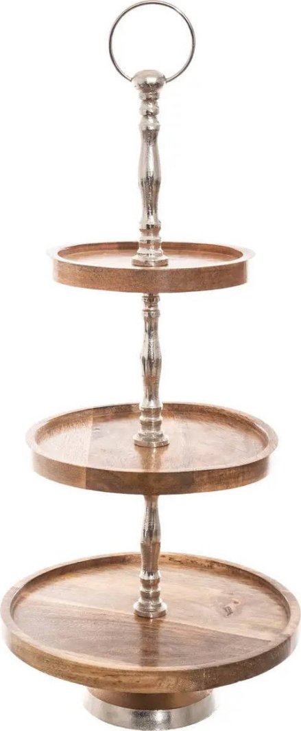 Patera Atmosphera składa się z trzech poziomych poziomów o średnicach 20 cm, 24,5 cm i 30 cm, co umożliwia różnorodne aranżacje. Dzięki temu z łatwością zaprezentujesz potrawy, owoce czy inne dekoracje w sposób, który z pewnością przyciągnie uwagę Twoich gości.