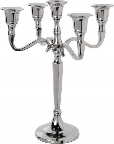 Świecznik metalowy srebrny, o wysokości 22 cm. Świecznik wykonany z metalu jest interesującym dodatkiem do dekoracji wnętrza. Dzięki świecom, które odbijają złote światło, stworzy niepowtarzalny klimat. Doskonale pasuje do wnętrz zarówno w okresie jesienno-zimowym, jak i w innych sezonach. Świecznik stanie się nieodzownym elementem dekoracyjnym w Twoim domu.