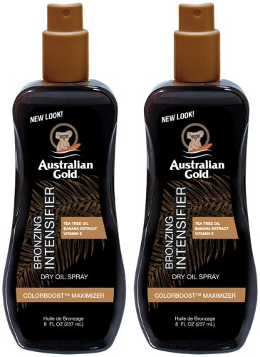Jest to tzw. "suchy olejek" Australian Gold, stworzony specjalnie z myślą o opalaniu się pod gołym niebem. Uwaga: bez filtra ochronnego, a więc tylko dla doświadczonych miłośników opalania. Twoja skóra bardzo szybko przybierze odcień bardzo głębokiego brązu, dzięki m.in. formule „Colorboost Tan Maximize”, naturalnym substancjom brązującym, olejowi z nasion marchwi, ekstraktom z banana, wyciągom z orzecha czarnego, olejowi annatto i olejkowi z australijskiego drzewa herbacianego. Aloes, witamina E, pantenol i olej z nasion słonecznika doskonale pielęgnują skórę. Butelki typu spray 237 ml.