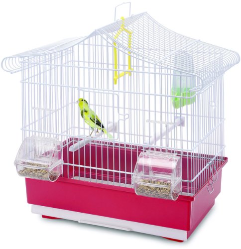 Klatka wyróżnia się piękną kolorystyką, łącząc białą metalową siatkę z różowym plastikowym dnem. Jej zaokrąglony dach dodaje uroku, sprawiając, że klatka doskonale wkomponuje się w każde wnętrze.