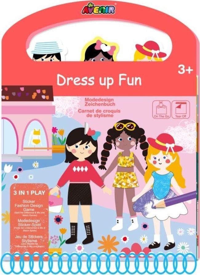 Książka ćwiczeń Avenir Dress up zapewnia małym projektantom mody łatwy i wygodny sposób tworzenia i eksponowania projektów w dowolnym miejscu i czasie. Arkusze do kolorowania, tkaniny, naklejki brokatowe, szablony dla małych projektantów. Wiek: 3+.