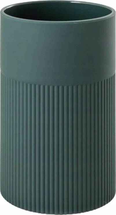 Kubek na szczoteczki z serii Frida w zachwycającym odcieniu butelkowej zieleni to prawdziwa ozdoba każdej łazienki. Wykonany z eleganckiego, matowego tworzywa, nadaje wnętrzu wyjątkowy charakter. Jego pojemność 300 ml sprawia, że idealnie nadaje się do przechowywania szczoteczki i pasty do zębów. Uniwersalność kubka pozwala także na wykorzystanie go jako eleganckiego pojemnika na akcesoria kosmetyczne, takie jak pędzle do makijażu czy tusz do rzęs.