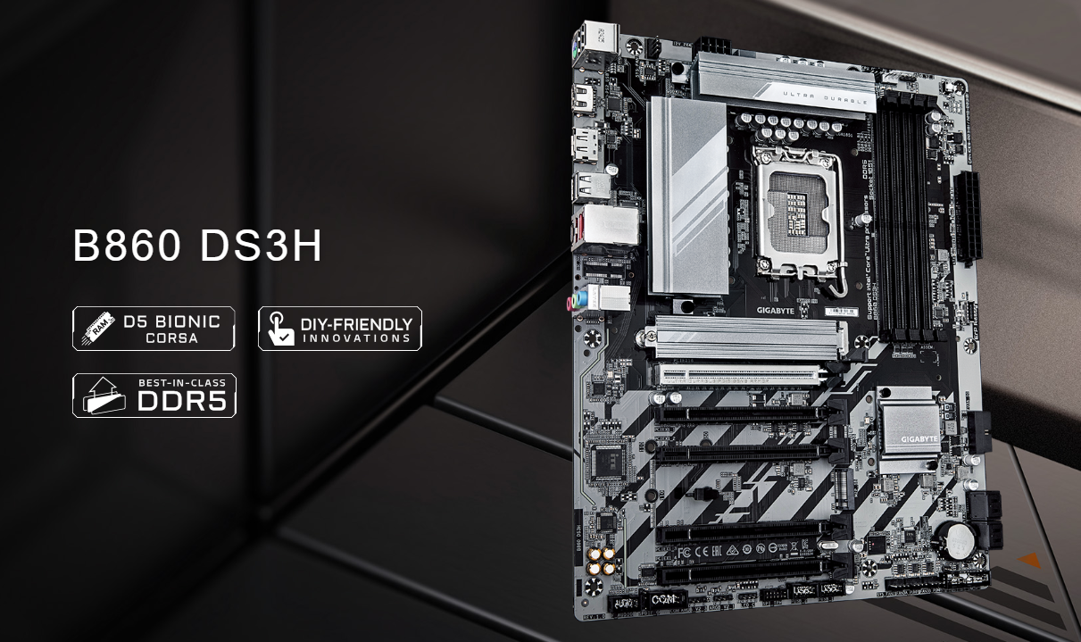 Gigabyte B860 DS3H to płyta główna z chipsetem Intel B860, zaprojektowana z myślą o użytkownikach poszukujących wysokiej wydajności w przystępnej cenie. Wspiera najnowsze procesory Intel Core Ultra 200, oferując płynną pracę zarówno w grach, jak i aplikacjach profesjonalnych. Dzięki 8+1+2 fazowemu zasilaniu VRM, płyta zapewnia stabilne działanie nawet przy intensywnym obciążeniu. To idealne rozwiązanie dla osób, które cenią sobie niezawodność i wydajność .