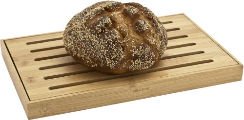 Bambusowa deska do krojenia chleba z demontowalną tacką na okruchy. Pozwala ona swobodnie opaść drobinkom pieczywa do pojemnika podczas krojenia.