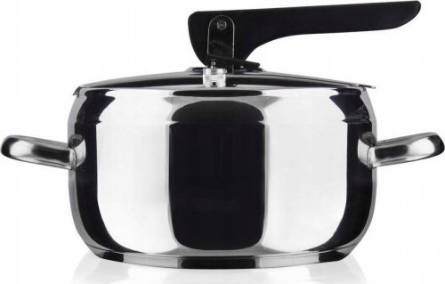 Szybkowar ze stali nierdzewnej Allegria 3,5l z zamkiem dźwigniowym, średnica 20,8 cm, wysokość 13 cm, stal nierdzewna 18/0, grubość ściany 0,6 mm, 2 zawory, mocne dno warstwowe. Pokrywa zawiera dwa zawory, główny zawór roboczy i pomocniczy / zawór bezpieczeństwa. Szybkowar jest przeznaczony do szybkiego przygotowania pokarmów i można go wykorzystać na wszystkich rodzajach płyt grzejnych, łącznie indukcji. Pokrywa szybkowaru zawiera główny zawór roboczy i zawór pomocniczy na wypadek zapchania się zaworu roboczego, co powoduje, że szybkowar jest maksymalnie bezpieczny! Szybkowar jest wyprodukowany z wytrzymałego materiału, ma grube dno i można go stosować do wszelkich rodzajów płyt grzewczych.
