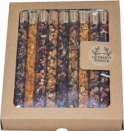 Wyjątkowy zestaw 9 smaków herbaty. Herbaty zapakowane są w szklane próbówki, a wszystko to umieszczone jest w ozdobnym pudełku prezentowym wypełnionym siankiem z dedykacją i życzeniami.