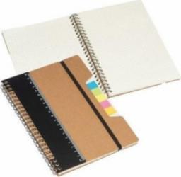 Notes A5 w kartonowej okładce z plastikową linijką, 120 pustymi stronami, karteczkami samoprzylepnymi i zamknięciem na gumkę.