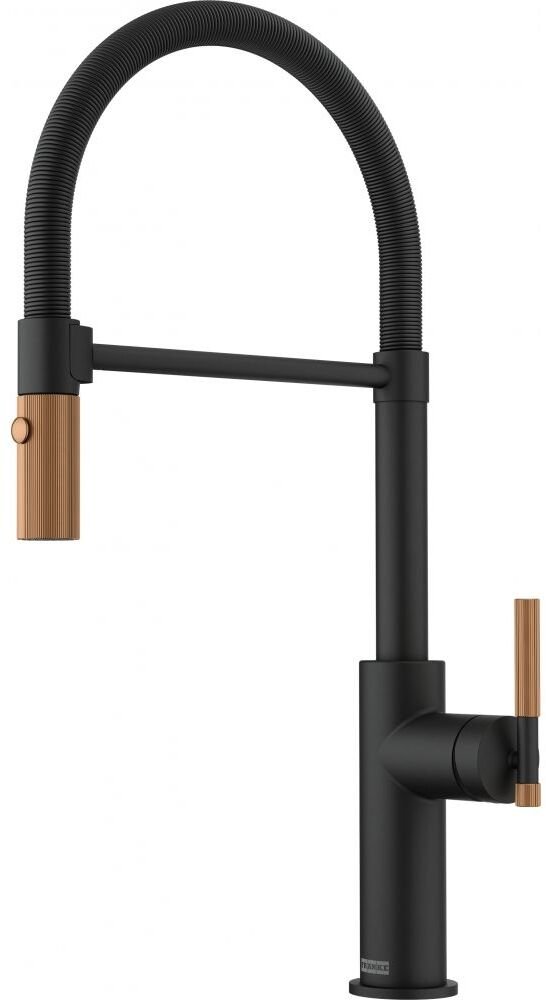 Stylowy wygląd baterii Franke Maris Stripes Semi Pro przyciąga uwagę i nadaje kuchni nowoczesny charakter. Połączenie matowej czerni z miedzią sprawia, że bateria staje się nie tylko funkcjonalnym elementem, ale również dekoracją wnętrza.