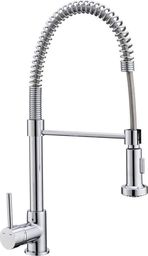 Mechaniczna bateria zlewozmywakowa, jednouchwytowa. Jest to bardzo praktyczne rozwiązanie do każdej kuchni. Wykonana jest z wysokiej jakości mosiądzu pokrytego chromem, głowica ceramiczna. Posiada długą, ruchomą, elastyczną wylewkę. Bateria wyposażona jest w uchwyt stabilizujący wylewkę. Napowietrzająca końcówka - perlator - ogranicza zużycie wody nawet o 40%. W zestawie znajdują się dwa węże plecione (40 cm F 3/8") oraz wszystkie elementy potrzebne do montażu.