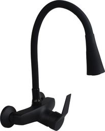 Mechaniczna bateria zlewozmywakowa, ścienna, jednouchwytowa z obrotową zmianą strumienia wody. Głowica ceramiczna. Posiada długą, ruchomą, elastyczną wylewkę w kolorze czarnym, która daje możliwość nie tylko szybkiego opłukiwania naczyń czy umycia zlewu, ale również wygodnego napełnianie garnków wodą. Napowietrzająca końcówka - perlator - ogranicza zużycie wody nawet o 40%. W zestawie znajdują się wszystkie elementy potrzebne do montażu.