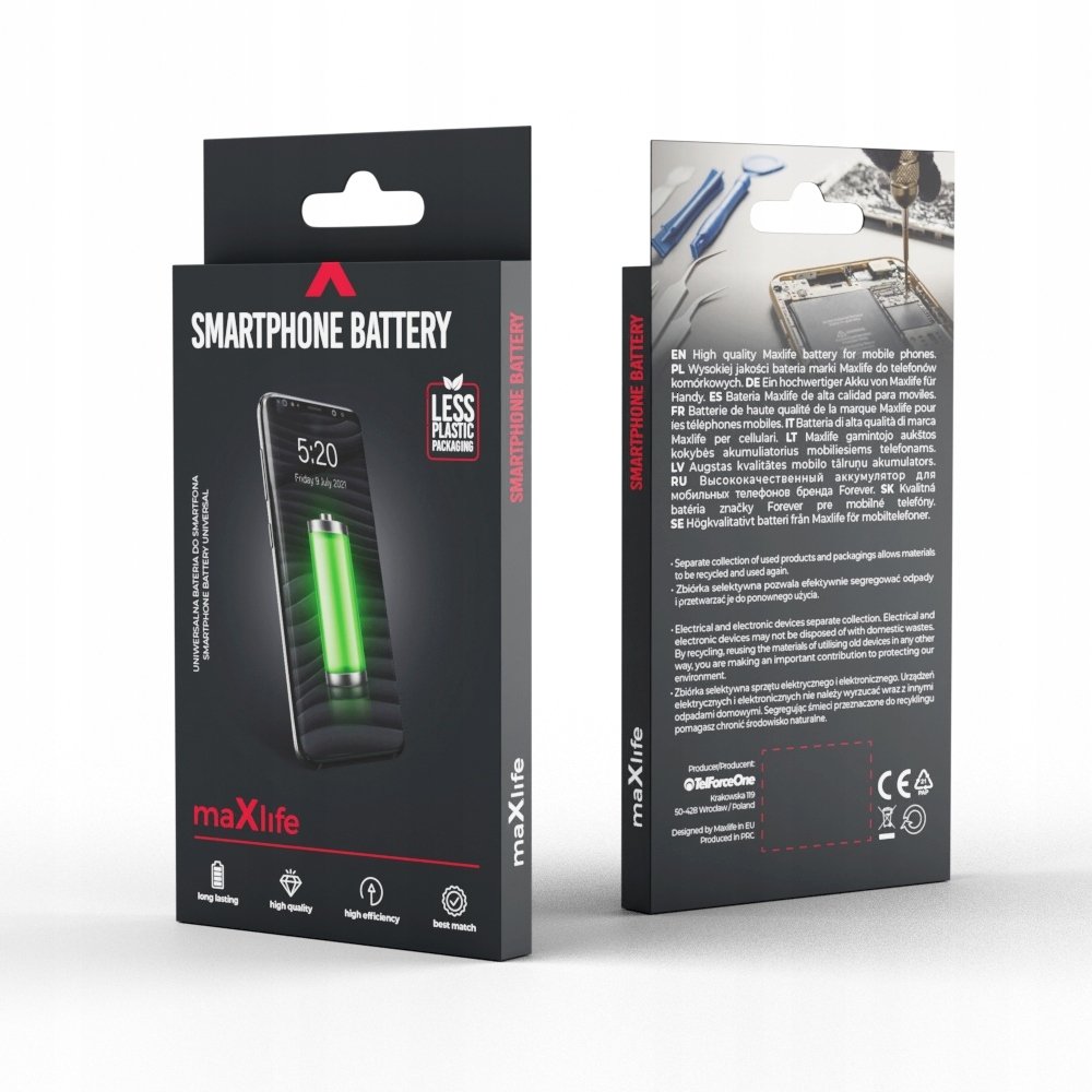 W baterii Maxlife wykorzystano starannie wyselekcjonowane ogniwa litowo-jonowe, co przekłada się na jej doskonałą jakość oraz długowieczność. Dzięki temu możesz być pewien, że Twój telefon będzie działał sprawnie przez dłuższy czas, eliminując konieczność częstego ładowania.