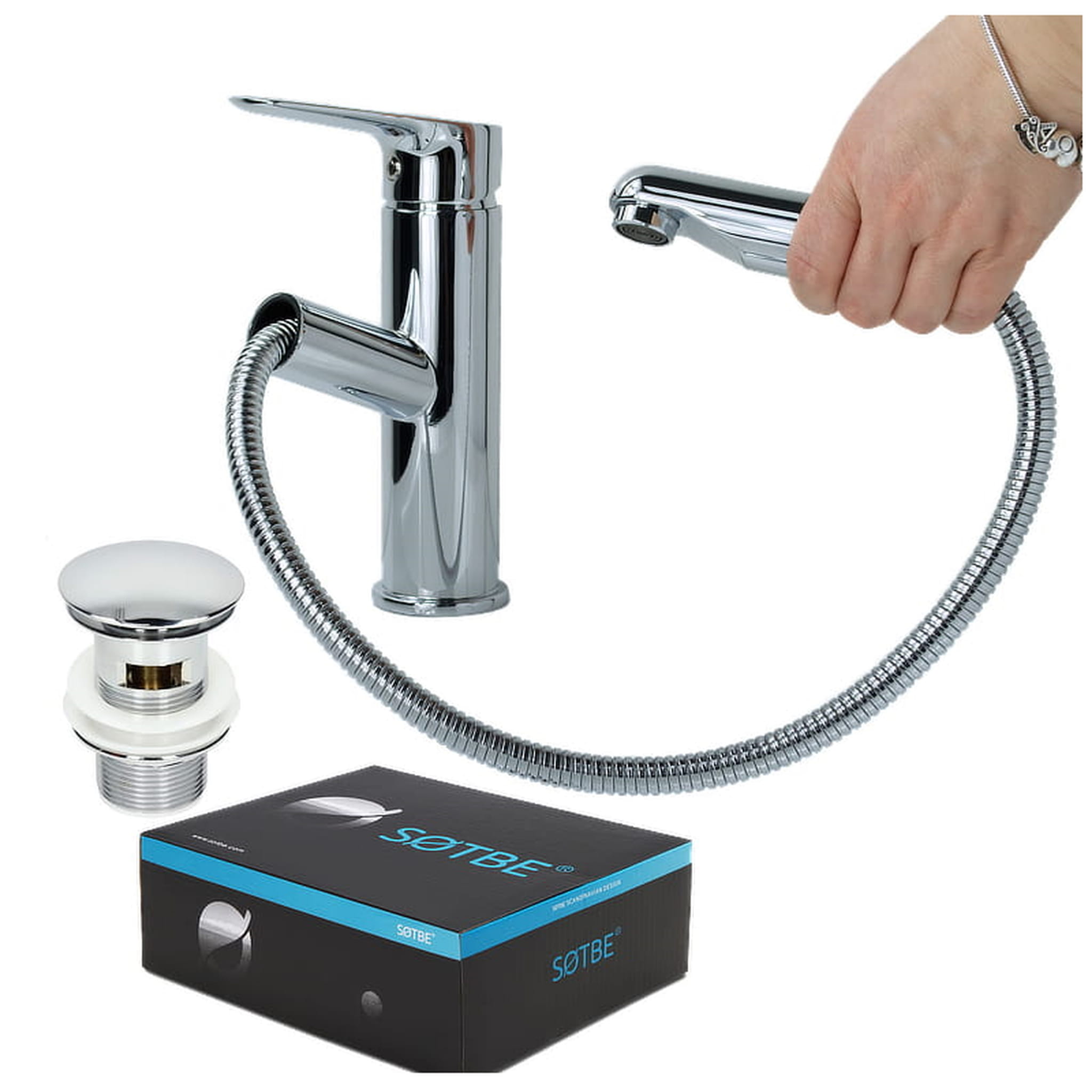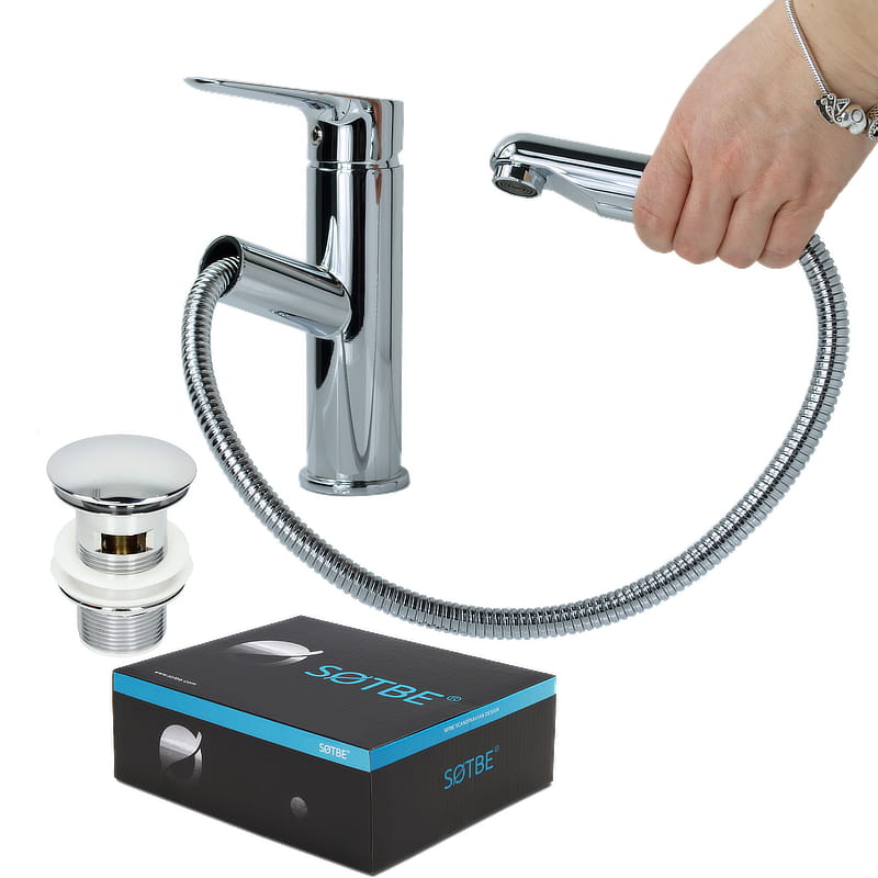 SOTBE INARI bateria umywalkowa z wyciąganą wylewką z korkiem INA-SPO-50228232_CC-MC-23579437