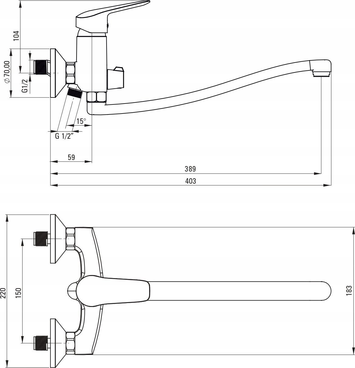 - końcówka przy słuchawce - wymiar: 1/2''