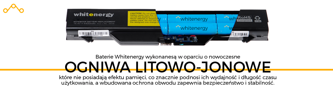Baterie Whitenergy to wysokiej klasy baterie zastępcze do notebooków. Z powodzeniem zastępują baterie oryginalne, a są przy tym w korzystnej cenie.Wybierając baterię zastępczą Whitenergy nie musisz iść na żadne kompromisy! Ogniwa Li-lon użyte w baterii są nowe (nie regenerowane) wysokiej jakości, produkowane przez znane, wiodące firmy. Testy dowodzą, że po 100 cyklach ładowania bateria nie traci swojej normatywnej pojemności.Tworzywo sztuczne użyte do produkcji baterii jest najwyższej jakości, o podwyższonej odporności termicznej.Wykonana z wysoką precyzją elektronika baterii wyposażona została w najwyższej klasy bezpiecznik (Fuse). Zamontowano zabezpieczenia chroniące przed przeładowaniem oraz przeciwprzepięciowe, przeciwprzeciążeniowe, przeciwzwarciowe.