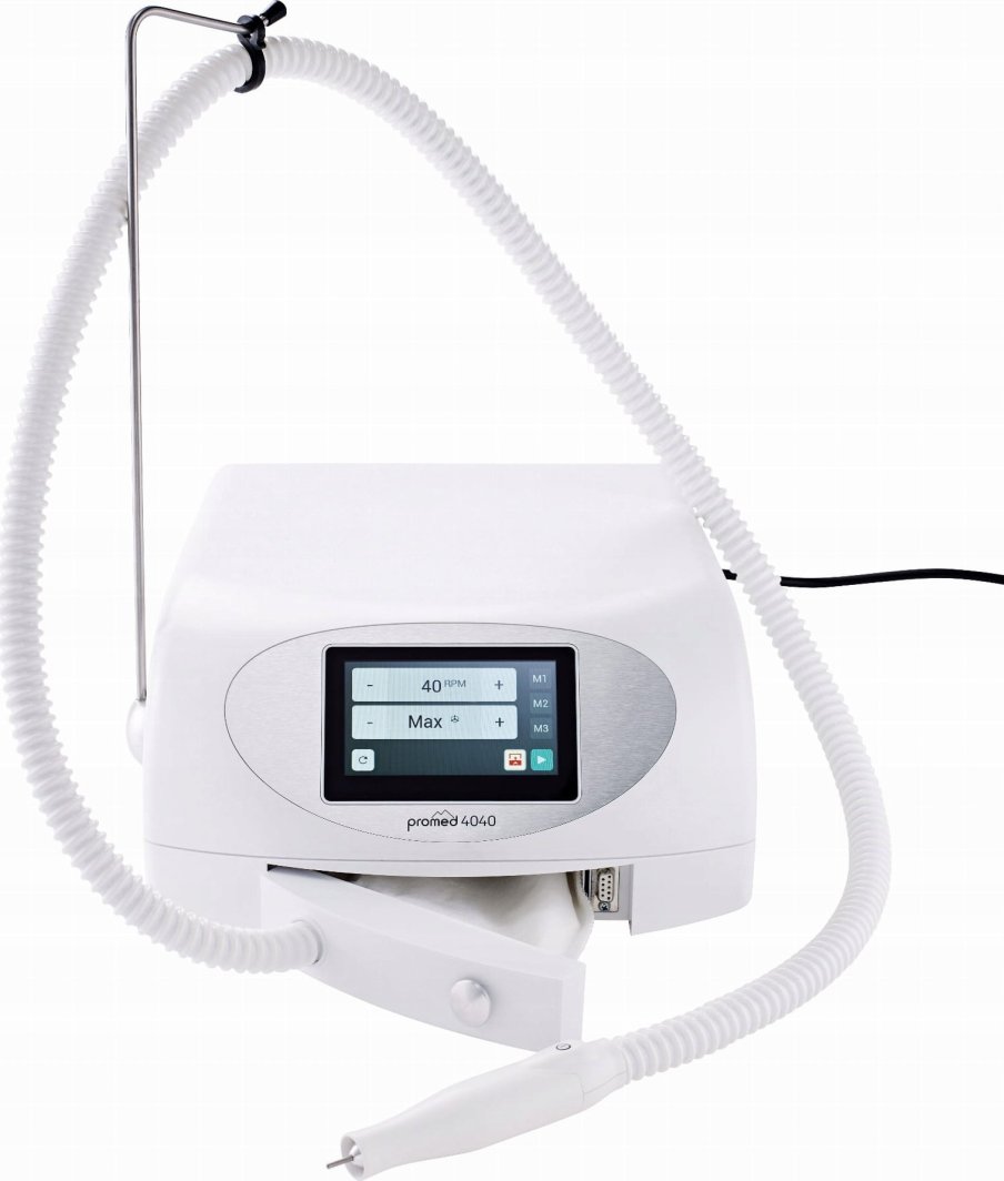 Frezarka podologiczna Promed 4040 z pochłaniaczem to zaawansowane urządzenie, które łączy nowoczesną technologię z ergonomicznym designem. Opracowana przez renomowaną niemiecką firmę PROMED, model 4040 stanowi doskonałe narzędzie do zabiegów manicure i pedicure, gwarantując znakomite rezultaty oraz wysoki standard higieny dzięki wbudowanemu systemowi pochłaniania pyłu.