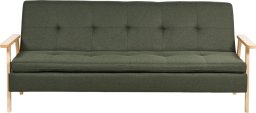 Sofa rozkładana zielona TJORN Lumarko to doskonały wybór dla osób, które pragną połączyć styl z praktycznością. Jej nowoczesny, prosty design sprawia, że idealnie wpasowuje się zarówno w minimalistyczne, jak i tradycyjne wnętrza. Wykonana z trwałego, a jednocześnie miękkiego poliestru, sofa jest nie tylko estetyczna, ale również wygodna w użytkowaniu. Drewniane podłokietniki i nogi w jasnym odcieniu drewna nadają jej retro charakteru, który z pewnością przyciągnie wzrok gości.