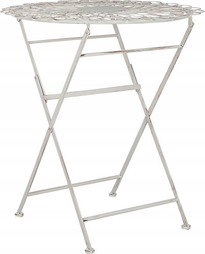 Składany stolik balkonowy w stylu vintage . Relaksuj się ze stylem za pomocą tego uroczego stolika balkonowego. Został on zaprojektowany specjalnie z myślą o użytku na zewnątrz. Dzięki kompaktowemu rozmiarowi zmieści się na balkonie, patio lub tarasie. Co więcej, stolik można złożyć, co pozwala na zaoszczędzenie miejsca i ułatwi jego przenoszenie. Dekoracyjny design z efektem postarzania upiększy każdą przestrzeń, nadając jej oryginalnego akcentu.