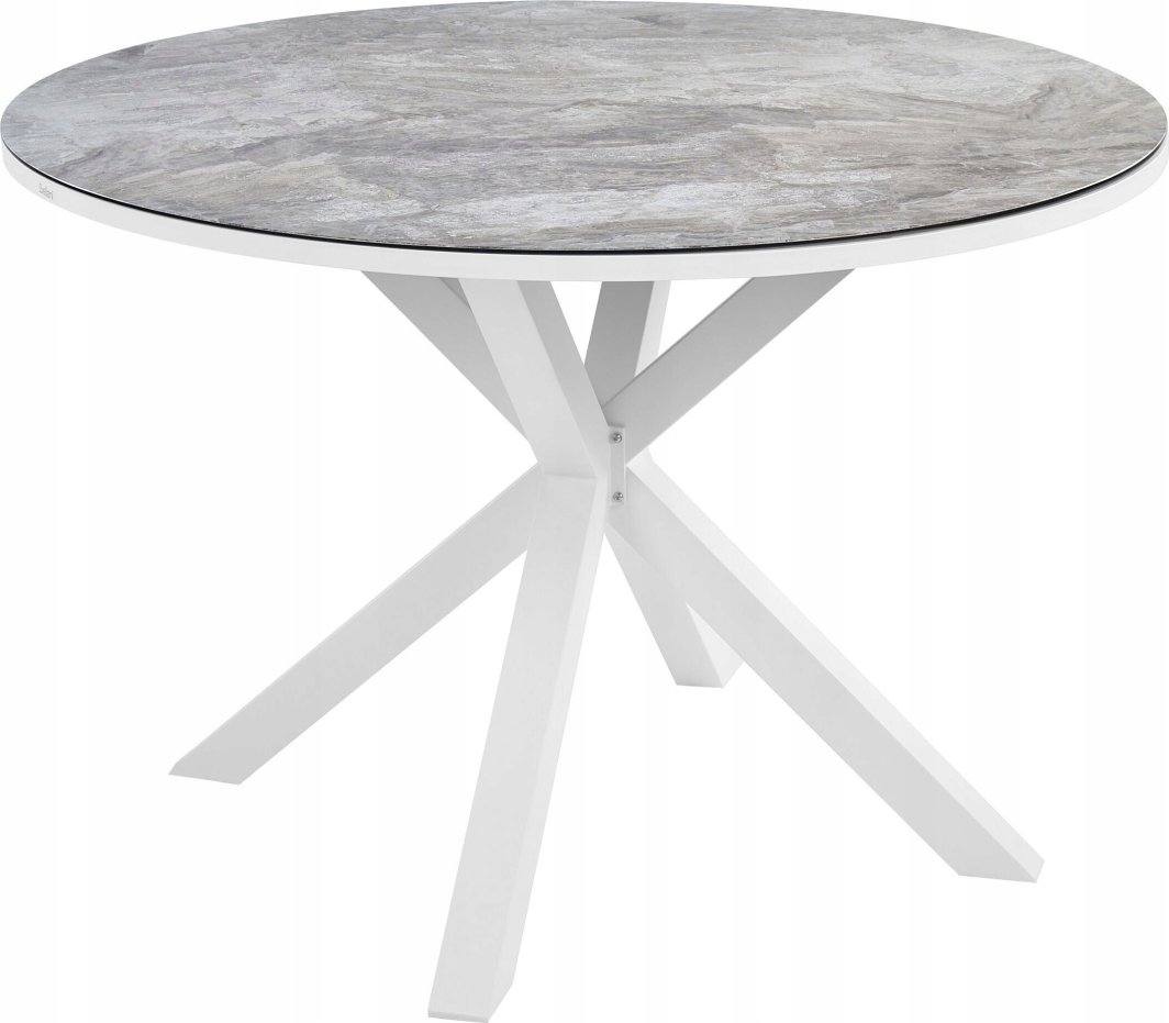 Stół MALETTO wyróżnia się unikalnym blatem ze szkła ceramicznego, który imituje marmur. Taki efekt nie tylko nadaje mu elegancki wygląd, ale również sprawia, że stół doskonale wpisuje się w różnorodne style aranżacji ogrodowych.