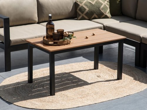 Stolik Messina wyróżnia się prostokątnym kształtem oraz dostępnością w dwóch kolorach: jasnego drewna i eleganckiej czerni. Jego stylowy wygląd sprawia, że doskonale komponuje się z różnorodnymi aranżacjami przestrzeni na świeżym powietrzu.