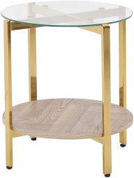 Beliani Stolik pomocniczy szklany jasne drewno ze złotym LOVELL