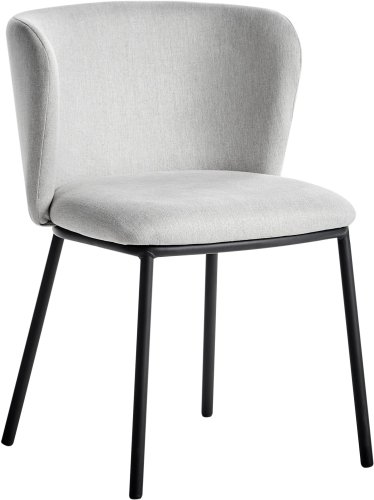 Krzesła MINA charakteryzują się solidnym materiałem strukturalnym, który zapewnia im długowieczność. Czarne, metalowe nogi nadają im nowoczesny wygląd, a jasnoszara tapicerka wprowadza subtelną elegancję do każdego wnętrza.