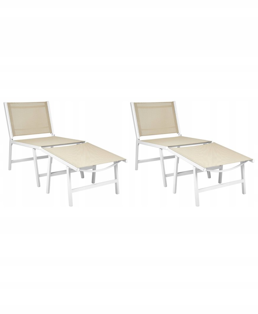 Beliani Zestaw 2 krzeseł ogrodowych MARCEDDI Z podnóżkiem Metal Biały/ beżowy