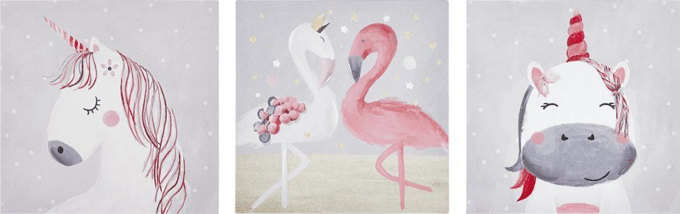 Beliani Zestaw 3 obrazów na płótnie zwierzęta 30 x 30 cm szaro-różowy TIMIA