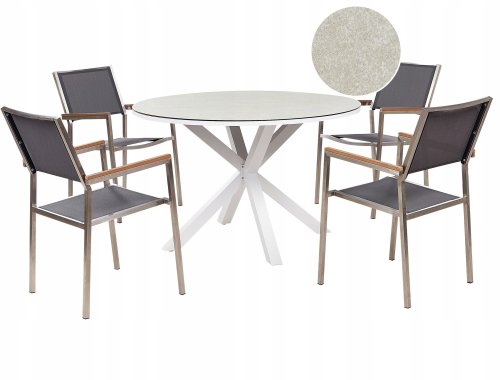 Beliani Zestaw ogrodowy dla 4 osób MALETTO/GROSSETO Metal Efekt marmuru Szary/ beżowy