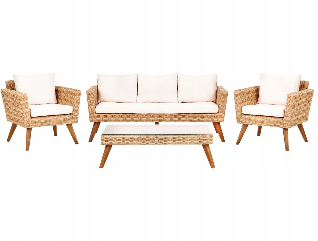 Styl boho i skandynawski, w którym utrzymany jest zestaw, sprawia, że doskonale wpisuje się on w nowoczesne trendy aranżacji przestrzeni zewnętrznych. Odcień złamanej bieli dodaje elegancji i sprawia, że zestaw jest uniwersalny, pasując do różnych stylów ogrodów i tarasów.