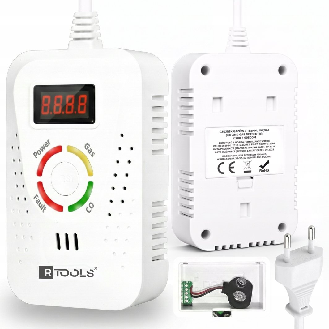 Benetech 2W1 CZUJNIK CZADU I GAZÓW PALNYCH TLENKU WĘGLA ALARM DŹWIĘKOWY ZASILANIE 230V