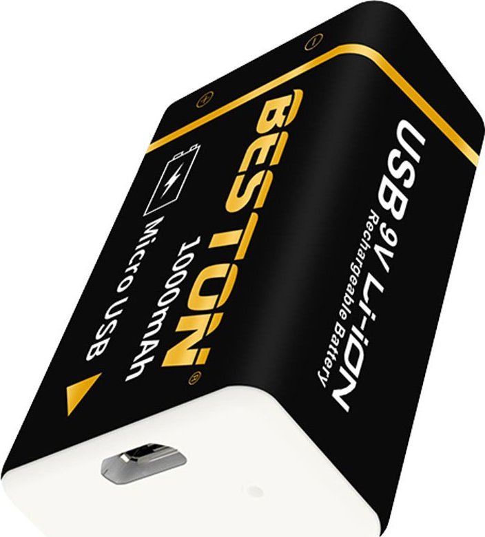 Bestone 1x akumulatorek bateria 9V 1000 mah z microUSB 6LR61 6F22 6AM6 522 Block 9V MN1604