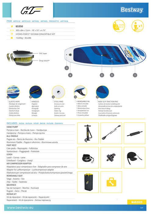 - sprzęt 2w1: po zamontowaniu siedziska z oparciem i podnóżka SUP szybko zmieni się w komfortowy kajak