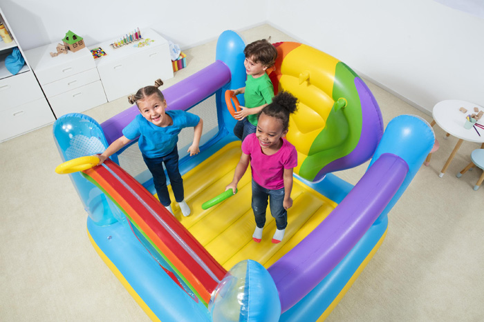 Zabawkę można rozstawić w ogrodzie, a w chłodniejsze dni przenieść do wnętrza domu. Pozwoli to dzieciom wyszaleć i wyskakać się niezależnie od pogody.