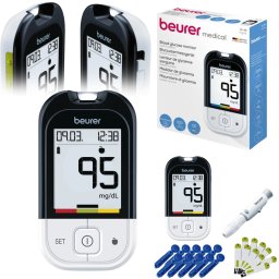 W skład zestawu Beurer GL 48 wchodzi wszystko, co potrzebne do rozpoczęcia monitorowania poziomu glukozy: