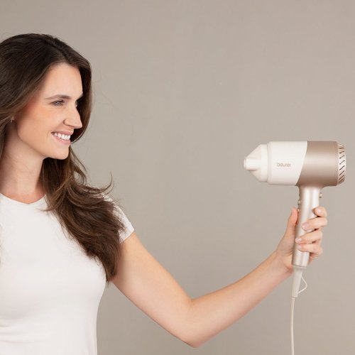 Beurer HC 40 ICONIC Pro została zaprojektowana z ergonomicznym, składanym uchwytem, co czyni ją idealnym wyborem zarówno do użytku domowego, jak i w podróży. Dzięki temu suszarka zajmuje niewiele miejsca i jest łatwa do przechowywania.