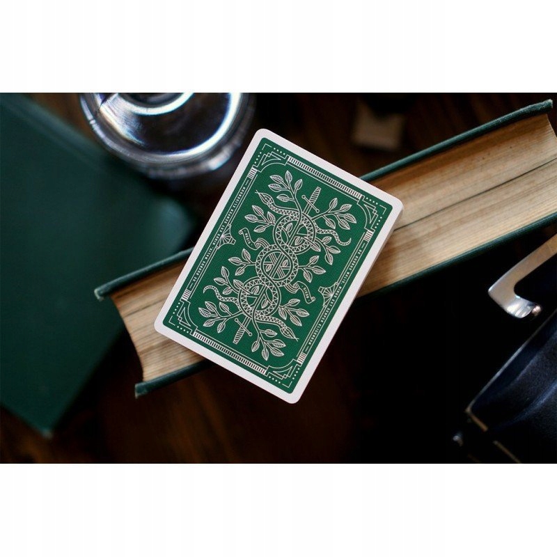 Karty Monarchs Green to niezwykła talia stworzona przez uznaną markę Theory11, która łączy w sobie elegancję oraz najwyższą jakość wykonania. Dzięki starannie dobranym materiałom i precyzyjnemu wykończeniu, te karty stanowią doskonały wybór dla każdego pasjonata gier karcianych.