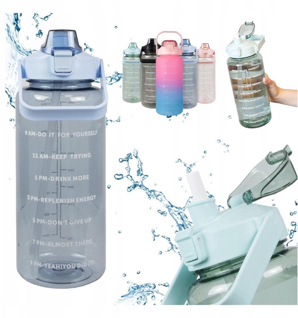 BIDON 2l NA WODĘ Butelka Motywacyjna Sportowa z Rurką Fitness Siłownia