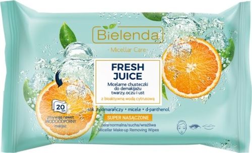 Bielenda Fresh Juice Chusteczki micelarne z wodą cytrusową Pomarańcza opakowanie 20 sztuk